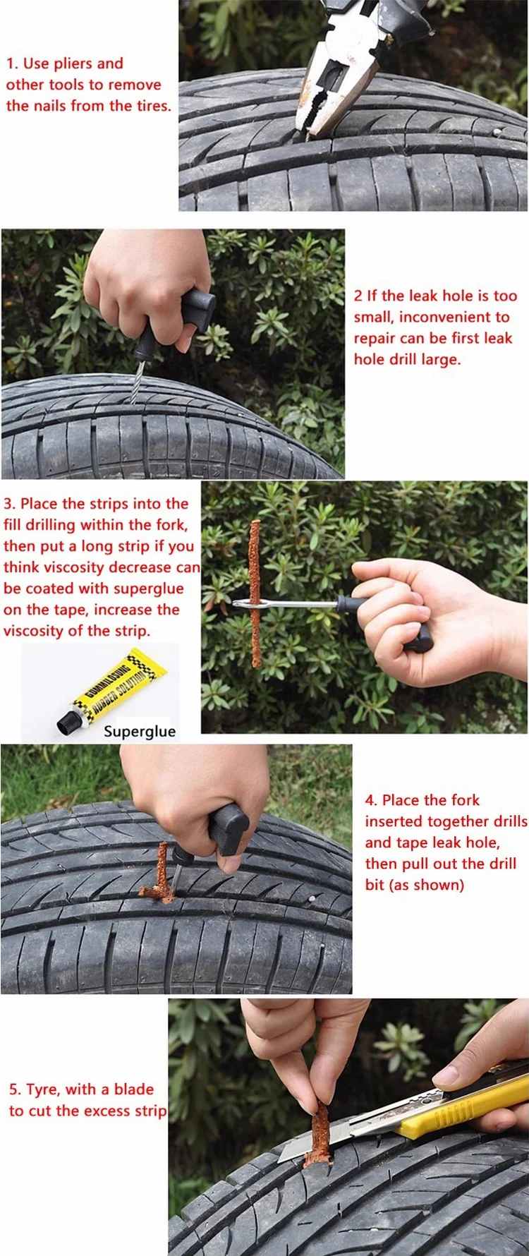Car Tire Repair Tool Set With Plastic Tool Box 11-Pieces Emergency Repair Kits