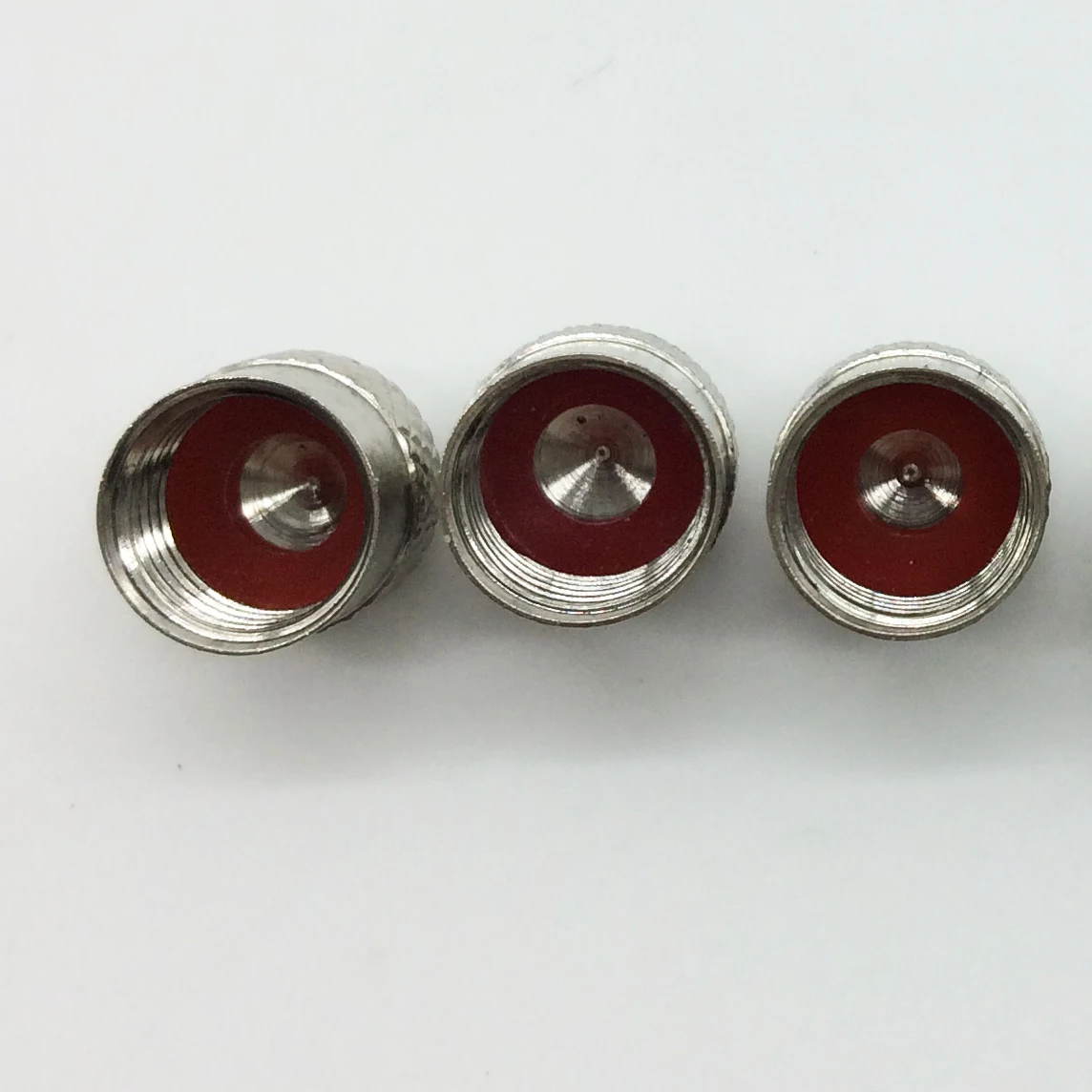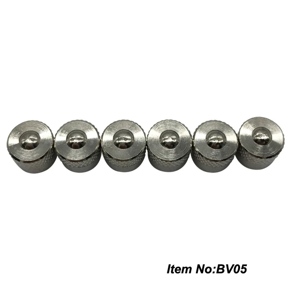 Item No.:BV05 Brass valve cap Material:Brass with nickel plating Weight:1.6g Dimension: Ø9*H9mm Inside dimension: 8V1(US standard)