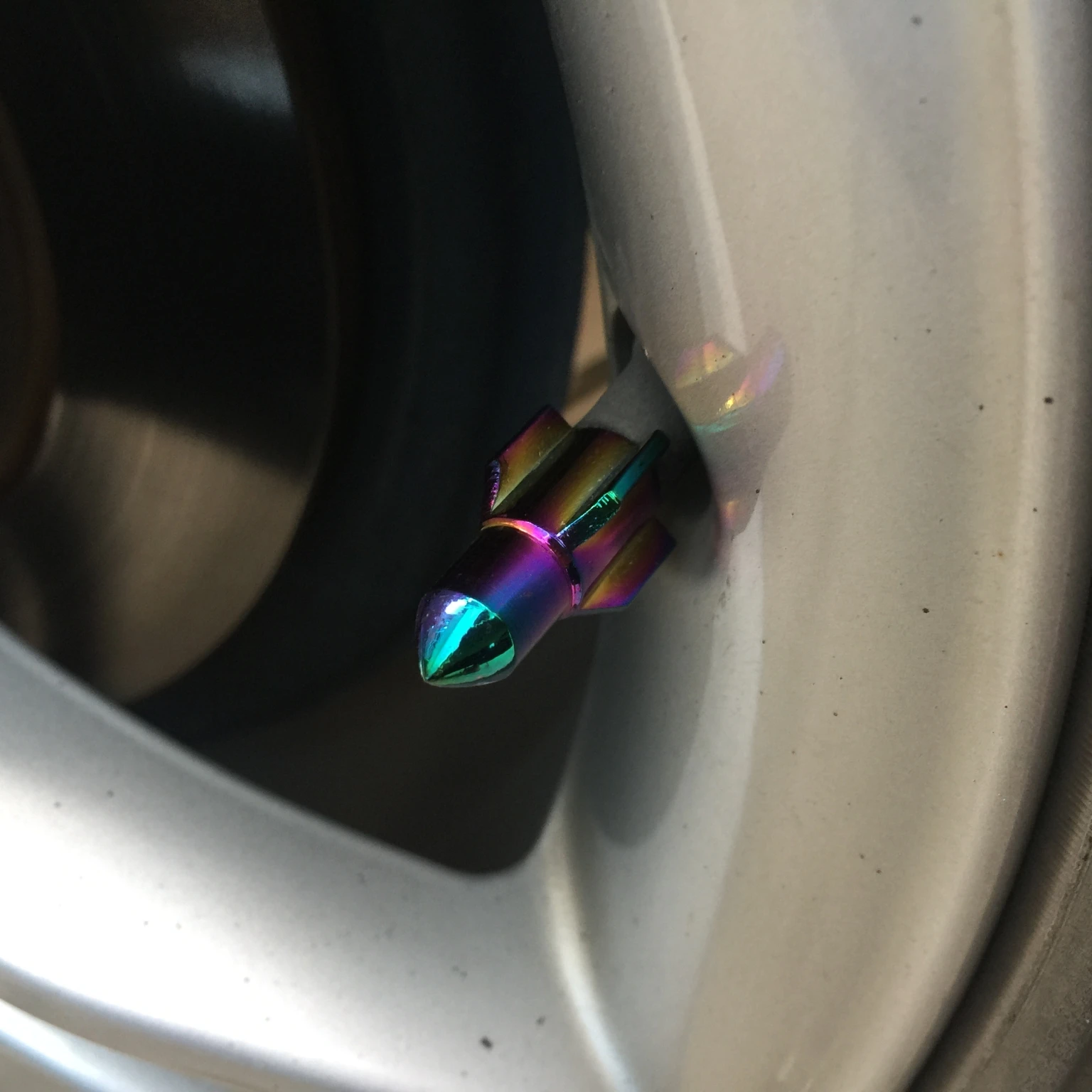 Rainbow Multicolor Rocket Aluminum Car Tire Valve Stem Dust Wheel Caps