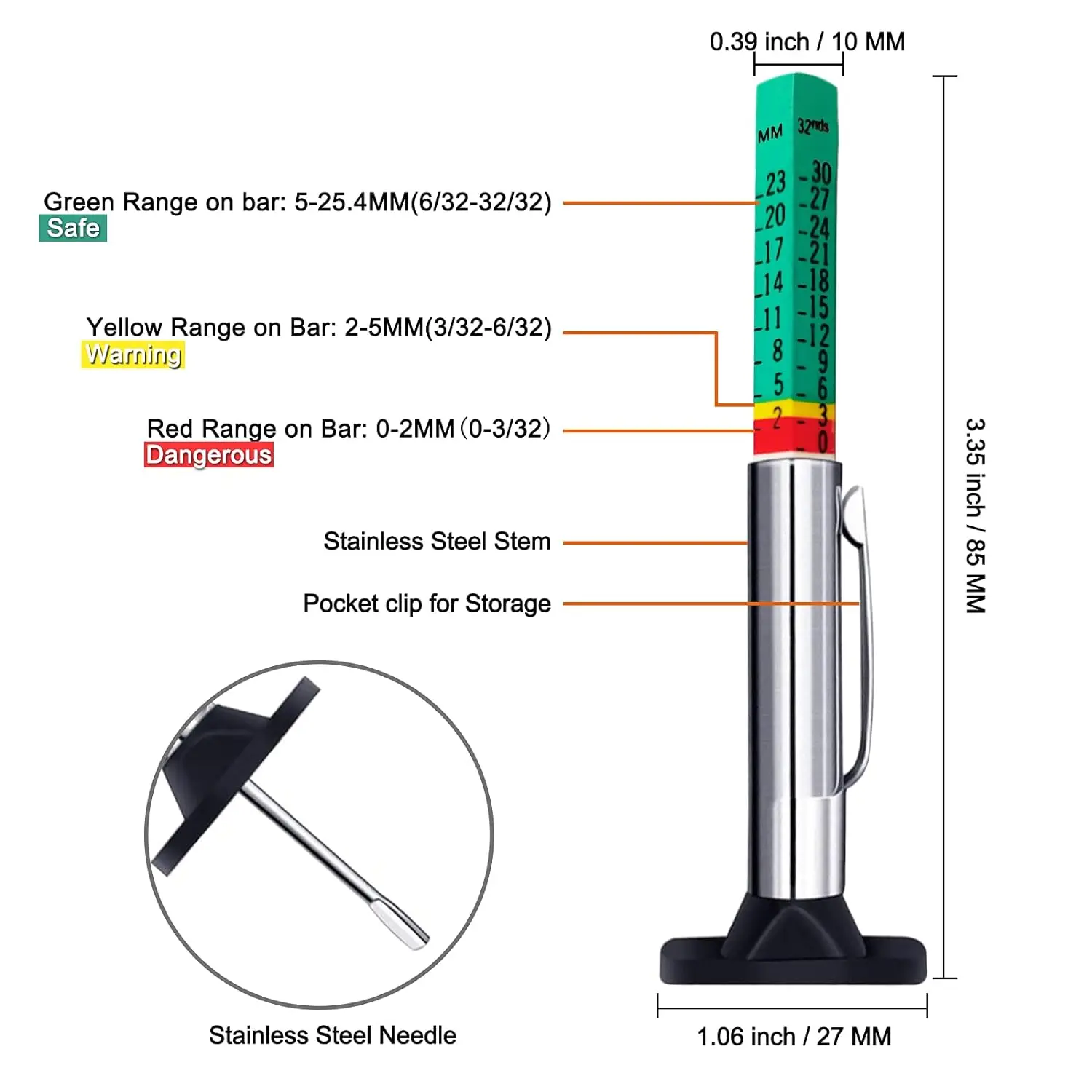 Tire Tread Depth Gauge Tire Measurement Tool in 32nds
